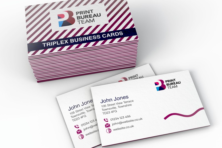 Heavyweight and durable business cards. Three layers sandwiched around your core colour.