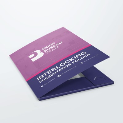 Our glued or interlocking customised presentation folder printing service is ideal if you are looking for smart and presentable branded folders to house your marketing literature. Use folders for meetings with clients, or for packaging materials for trade shows and events.