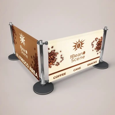 Café barriers are a great way to create space for outdoor dining or to create space for social distancing. Café barriers offer a chance to advertise outside of the usual scope. Our classic or premium café barriers are printed in full colour onto waterproof sturdy material and are built to last.